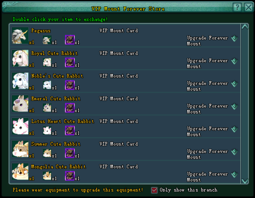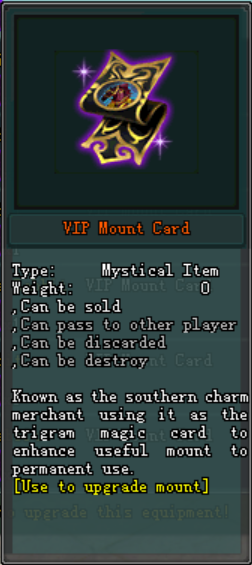 អ្នកម្សាន្តអាចធ្វើការយក VIP Mount Card ទៅប្ដូរជាមួយ NPC: Chrimson Amber ដែលមាននៅគ្រប់ទីក្រុងទាំងអស់។