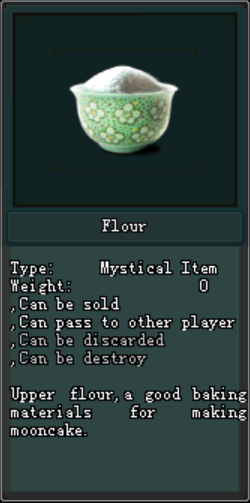 Mooncake Pie ចំនួន x1, Flour ចំនួន x1, Firewood ចំនួន x1
