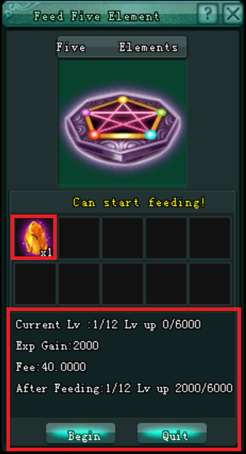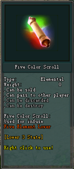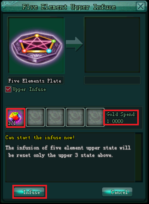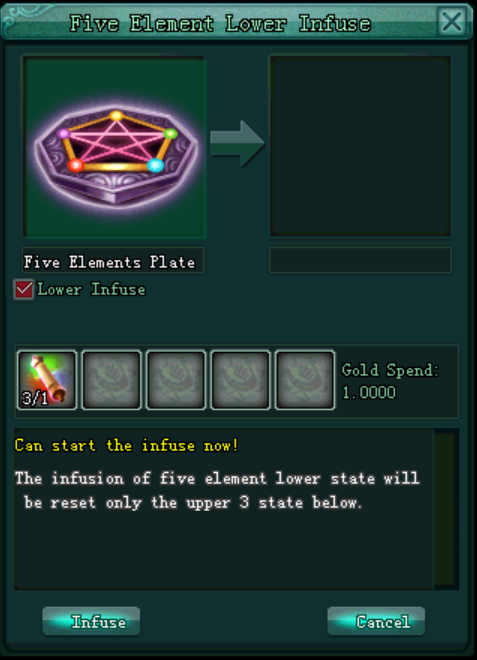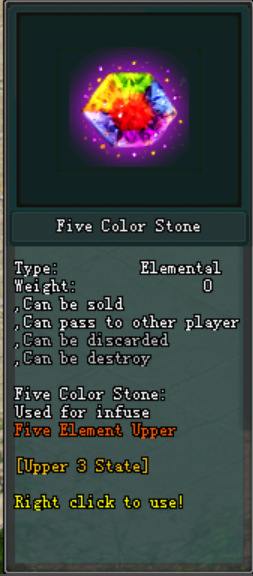 - Introduction Feeding: Right Click on Five Color Stone, Upper Infuse Board Will Appear.