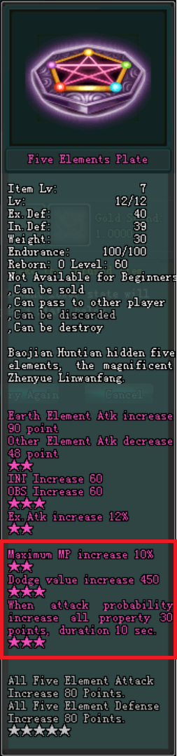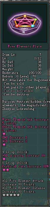 Five Elements Plate is a new function item that can provide players with a new equipment like never before, this new equipment can help increase both Defense and make your character's Attack Power stronger.