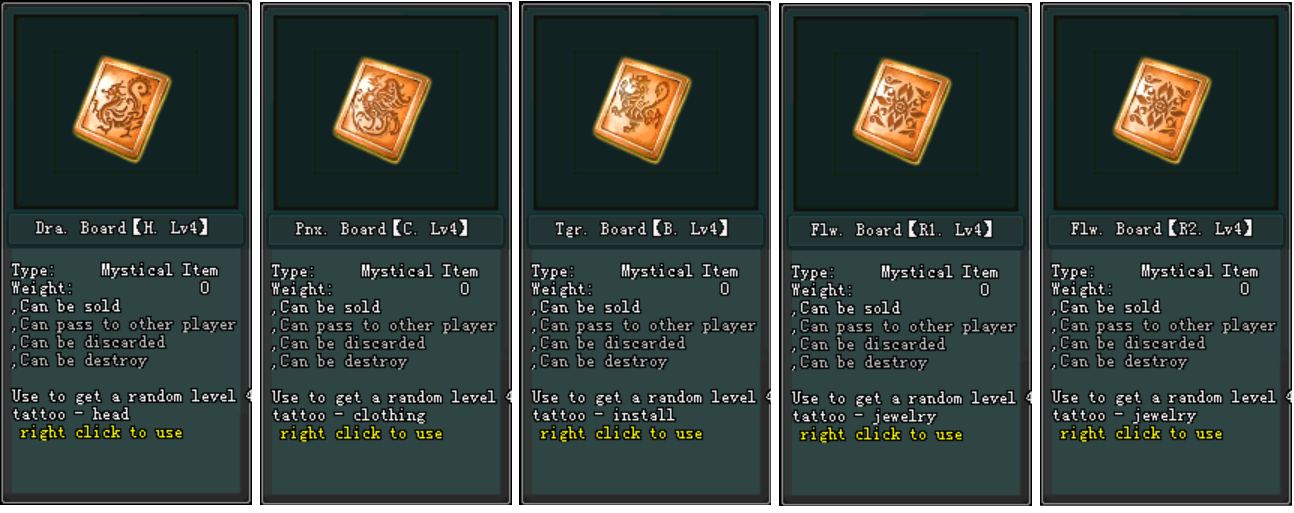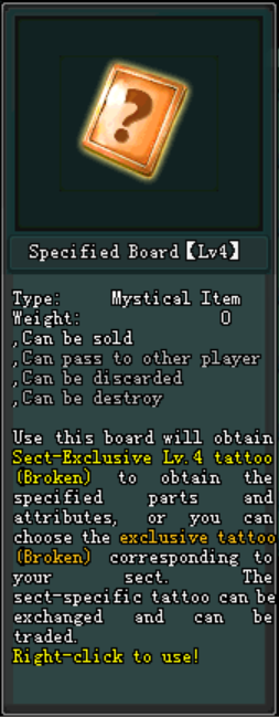 ●Tattoo Lv.3 អាចទទួលបានមកពីការចូលរួម ព្រឹត្តិការណ៍ Swords Valley Dungeon ជាមួយ:NPC: Wuwei Yang YinQiu (God Realm [207,193])