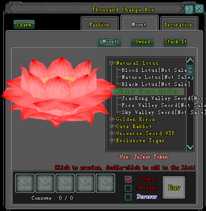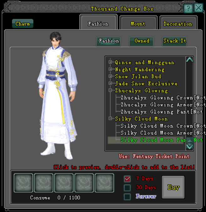 ការបន្ថែមសម្ភារៈទៅក្នុង ទូរសម្លៀកបំពាក់ Thousand Change Box មានដូចខាងក្រោម៖