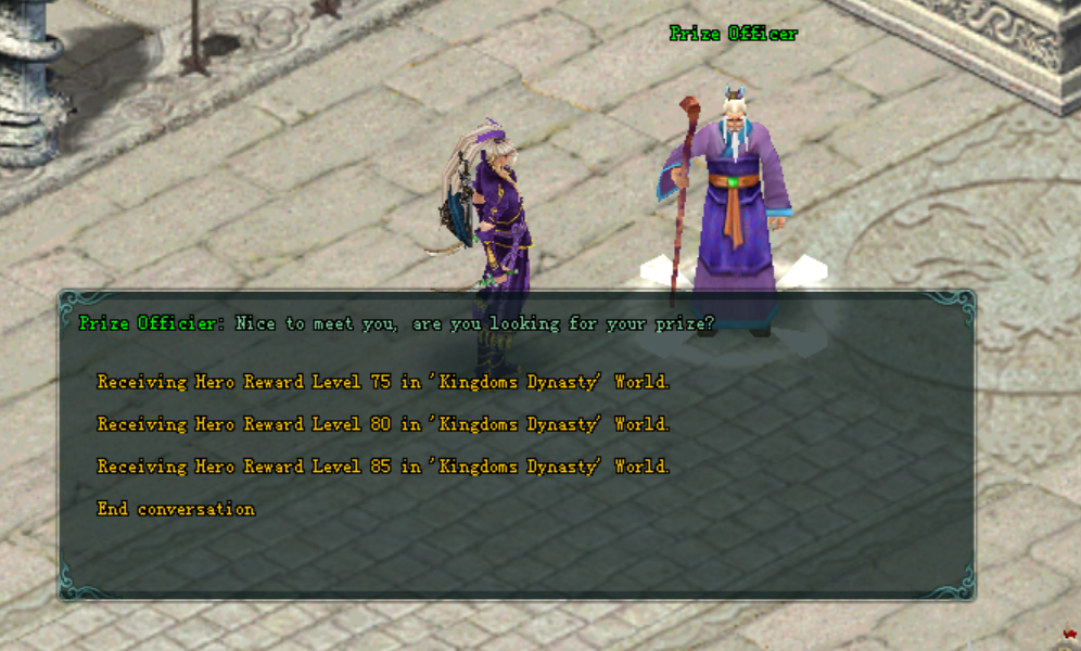 អាចធ្វើដំណើរទៅជួប NPC: Prize Officer ដែលមានទីតាំងស្ថិតនៅ BianJing [185/172] (ឬអាចបើកបាននៅក្រុងផ្សេងទៀតដែរ)។