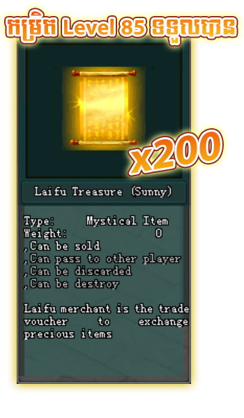 III. បន្ទាប់មកអ្នកកម្សាន្តនីមួយៗ អាចជ្រើសរើសយក រង្វាន់តាមកំរិត របស់តួអង្គ៖