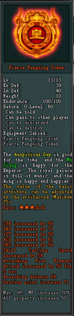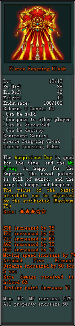 I. ដំណើរការនៃការផ្លាស់ប្ដូរ Fierce Fengming Cloak & Badge