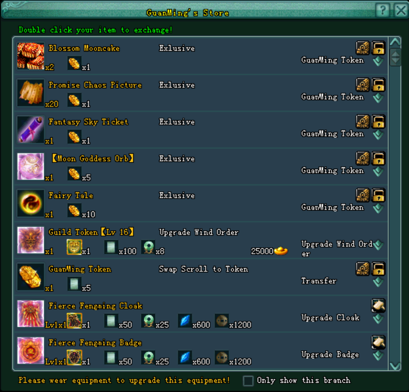 - បន្ទាប់ពីធ្វើបច្ចុប្បន្នភាព Version 2.0.1 រួចមក អ្នកកម្សាន្តអាចធ្វើការ ផ្លាស់ប្ដូរនូវ Fierce Fengming Cloak & Badge បាននៅក្នុងហាងទំនិញព្រឹត្តិការណ៍ មហាសង្គ្រាម Guild Battle នៅឯទីក្រុង QuanZhou។