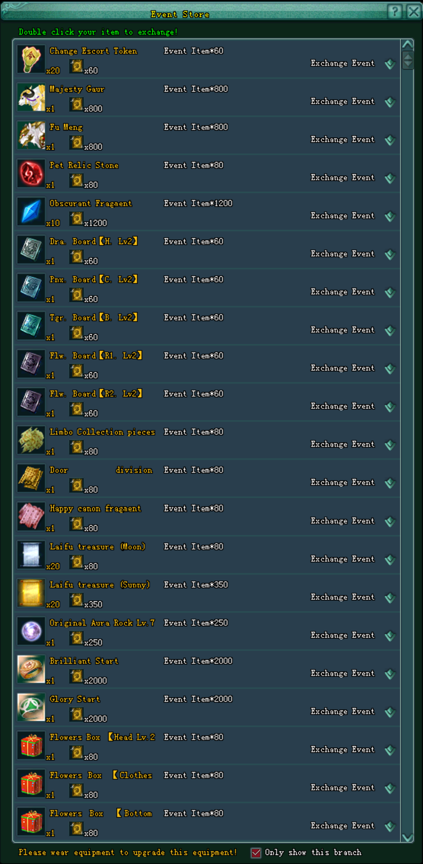 VIII.សម្រាប់ Event Item ក៏អាចប្ដូរជា សម្ភារៈដូចខាងក្រោមផងដែរ៖