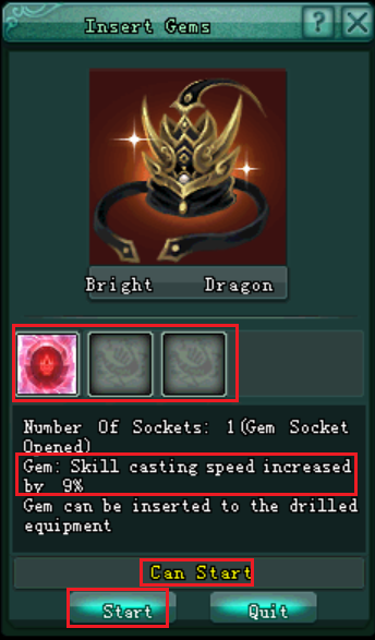 ដាកត្បូងរបស់អ្នក ចូលចន្លោះនោះ រួចចុច "Start"