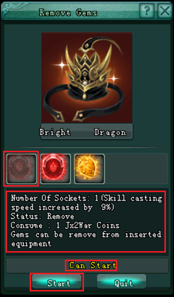 - រាល់ការដកយក ត្បូង Gem Stone 1គ្រាប់ ចេញពីសម្លៀកបំពាក់មកវិញត្រូវចំណាយ Jx2War Coins ចំនួន 1គ្រាប់។