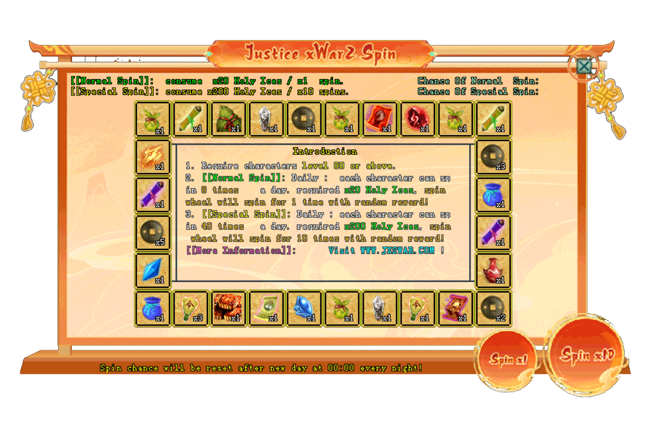 ព្រឹត្តិការណ៍ Justice xWar2 Spinning Wheel