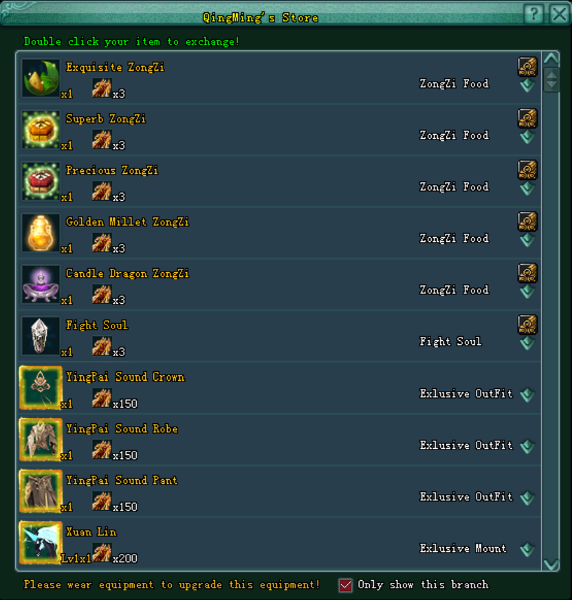 នៅពេលដែលអ្នកកម្សាន្ត ទទួលបាននូវ QingMing Banner ដែលទទួលបានមកពីការ Pray - QingMing Ancestor នោះអ្នកកម្សាន្តក៏អាចធ្វើការយកមកផ្លាស់ប្ដូរនៅក្នុង ហាងទំនិញ ព្រឹត្តិការណ៍ QingMing បានផងដែរ!