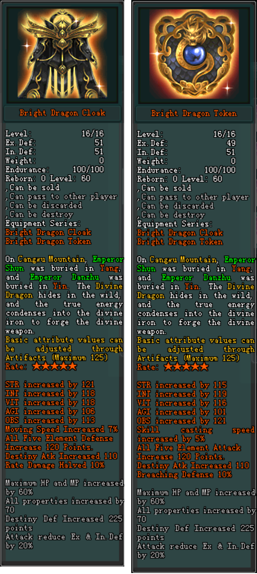 [ អនុភាពរបស់ឈុត Bright Dragon Cloak និង Badge ]