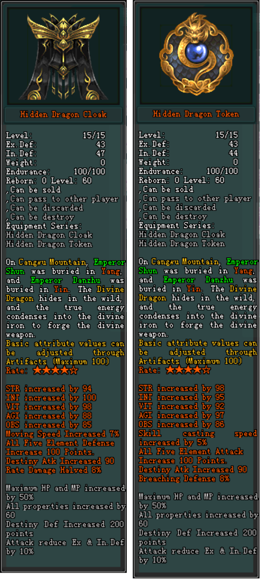 [ អនុភាពរបស់ឈុត Hidden Dragon Cloak និង Badge ]