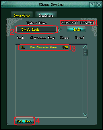 - រង្វាន់នៃ ព្រឹត្តិការណ៍អាចទទួលយកបានសម្រាប់ ថ្ងៃទី 20 និងម៉ោង 20:00 នៅទីក្រុង BianJing តែប៉ុណ្ណោះ។
