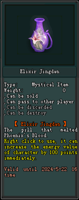 (Elixir Jingdan អាចទទួលទានបាន នឹង ទទួលបាននូវ 100 Energy Points ភ្លាមៗ)