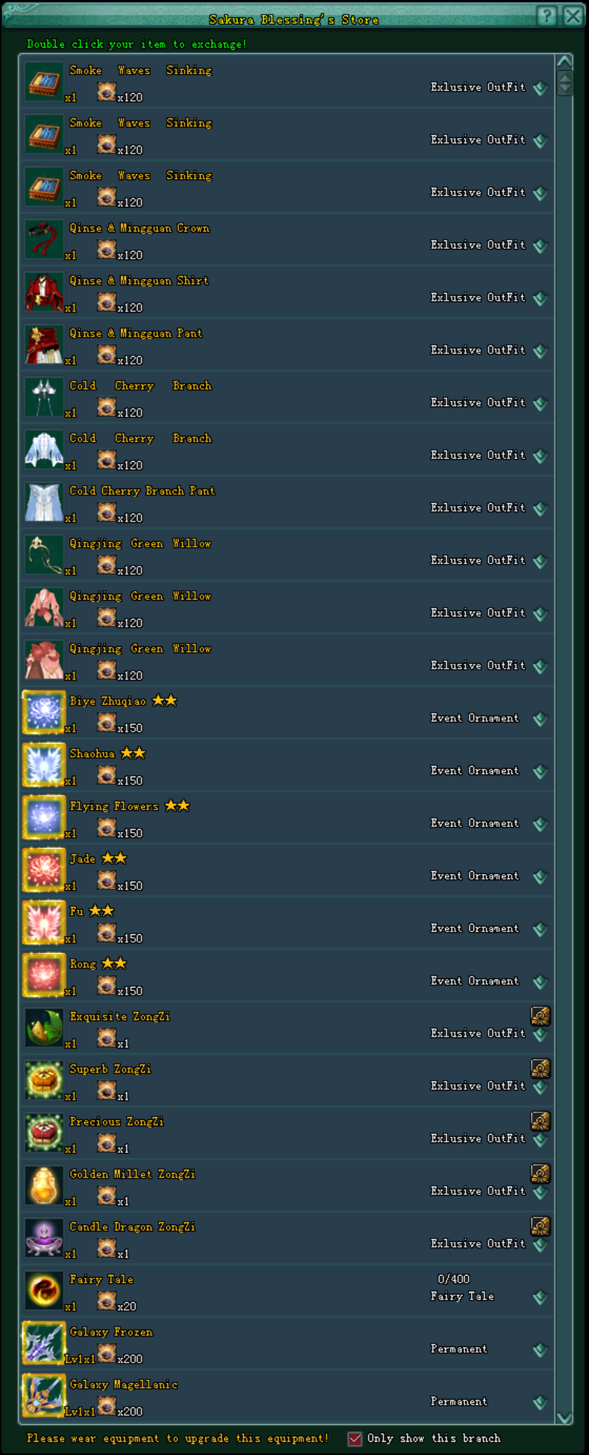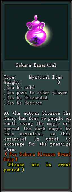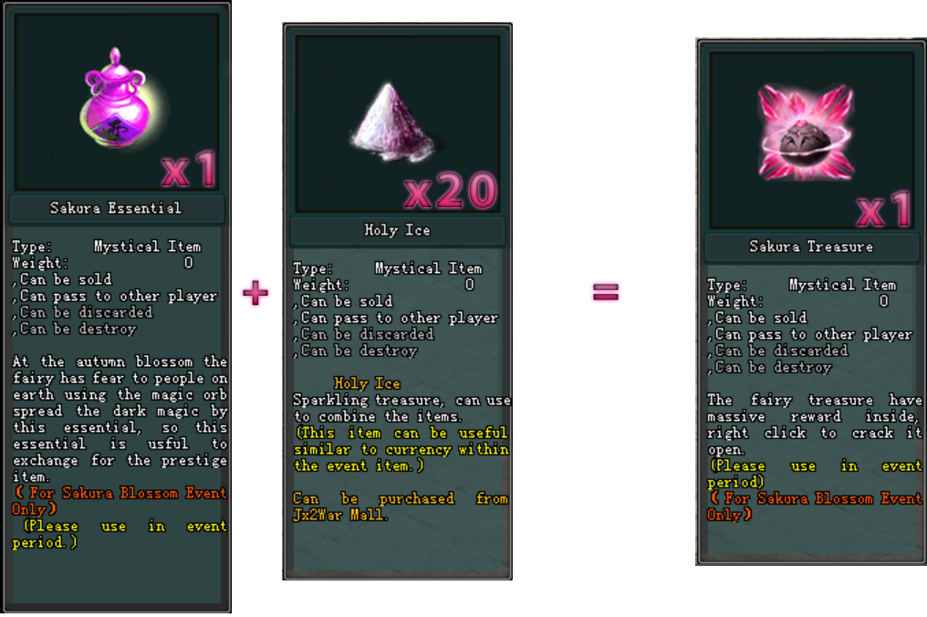 នៅក្នុងព្រឹត្តិការណ៍នេះ អ្នកកម្សាន្តអាចធ្វើការ ប្ដូរយក Sakura Treasure បានដោយតម្រូវអោយមាន ៖