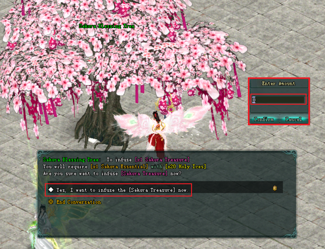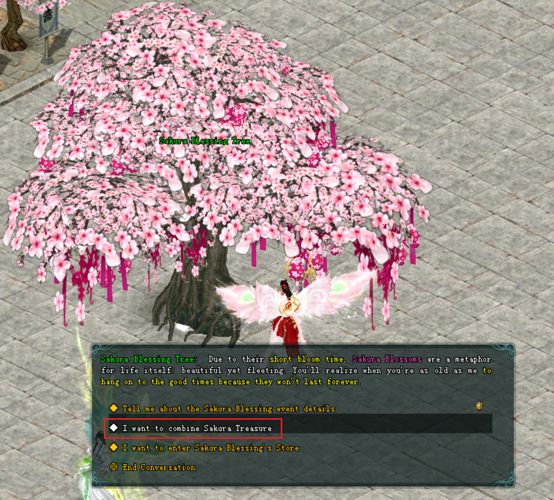 ● អ្នកកម្សាន្តអាចទៅជួប៖ NPC: Sakura Blessing Tree ដែលមានទីតាំងស្ថិតនៅ តាមទីក្រុង BianJing / ChengDu / QuanZhou ។