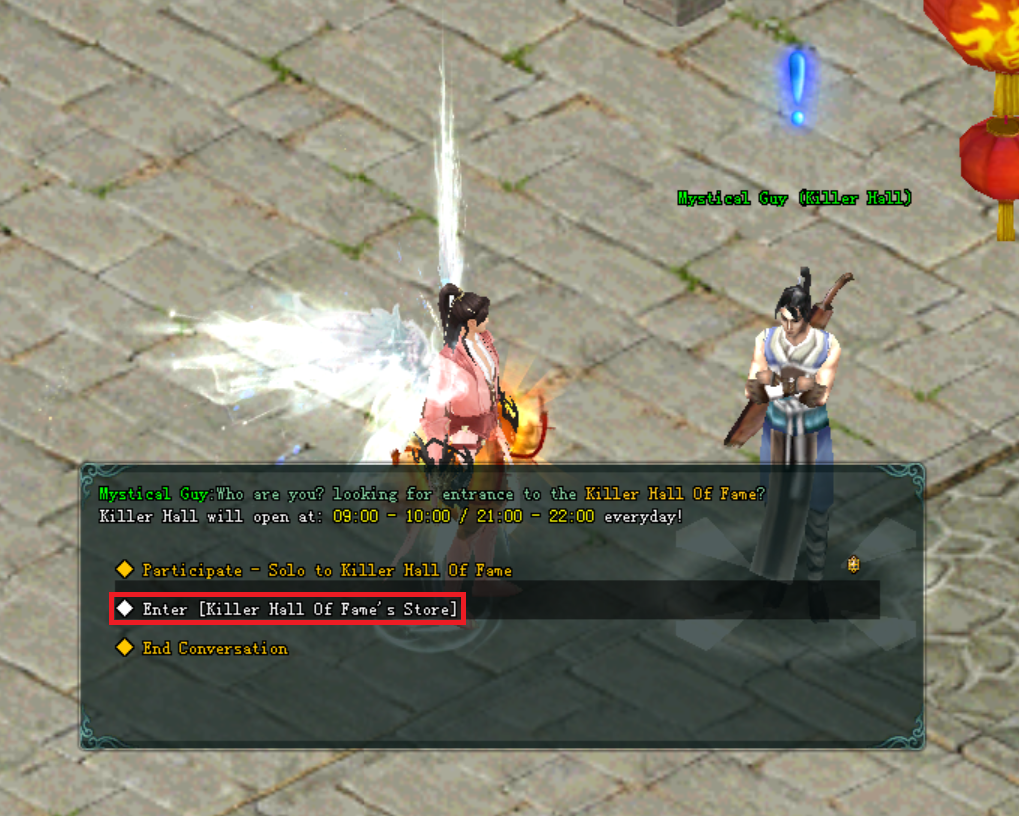 អ្នកកម្សាន្តអាចធ្វើការ ស្វែងរកគម្ពី Master Special Scroll នៅឯ NPC Killer Hall Of Fame