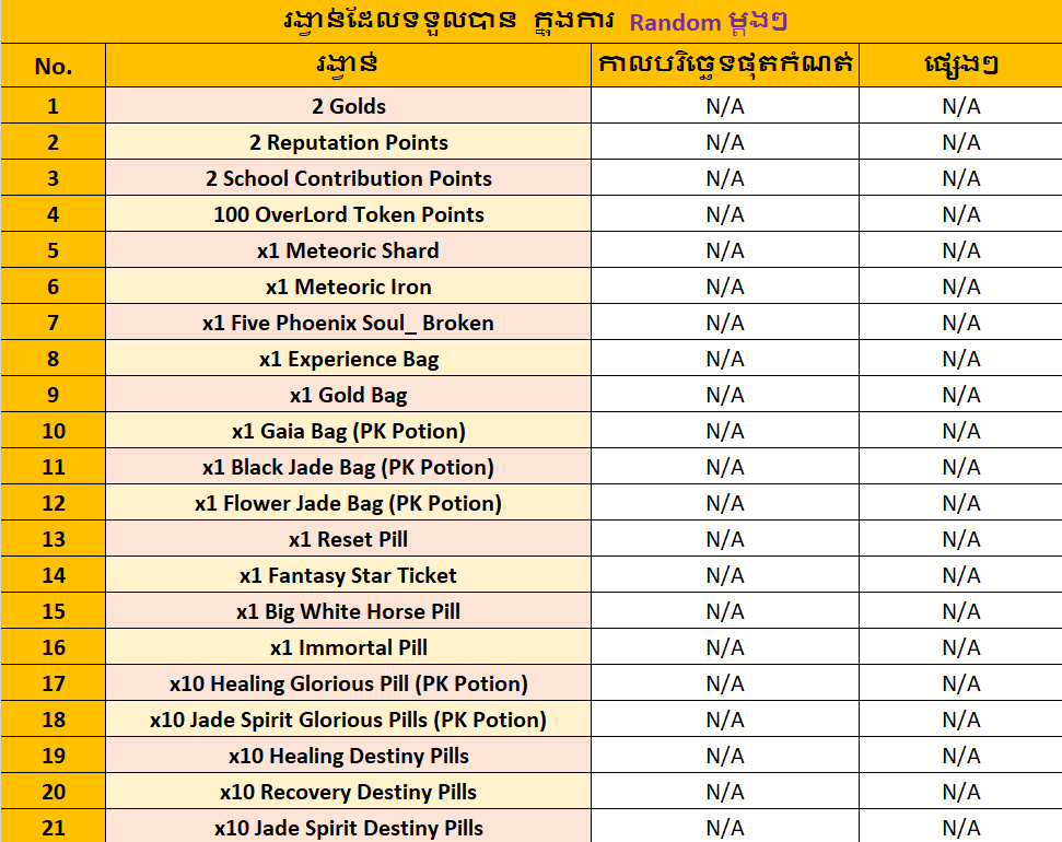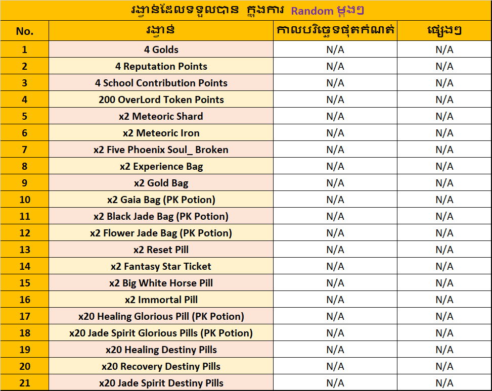 - ព្រឹត្តិការណ៍ទាំងអស់ខាងលើនេះ គឺមាននៅគ្រប់ Server ទាំងអស់។