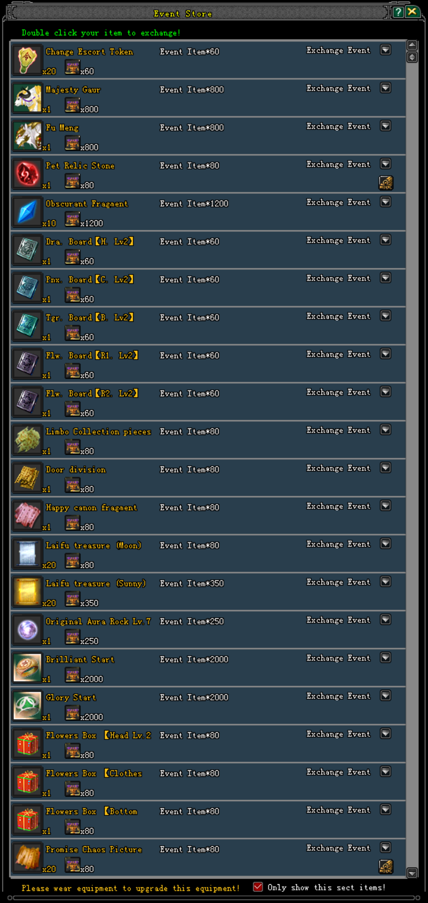 • តួអង្គនីមួយៗ ត្រូវតែមានកម្រិត យ៉ាងហោចណាស់ Level 60 ឡើងទៅ ហើយបាន ចូលបក្សរួច ដើម្បីអាចរើសយក ប្រអប់ទាំងនោះបាន។