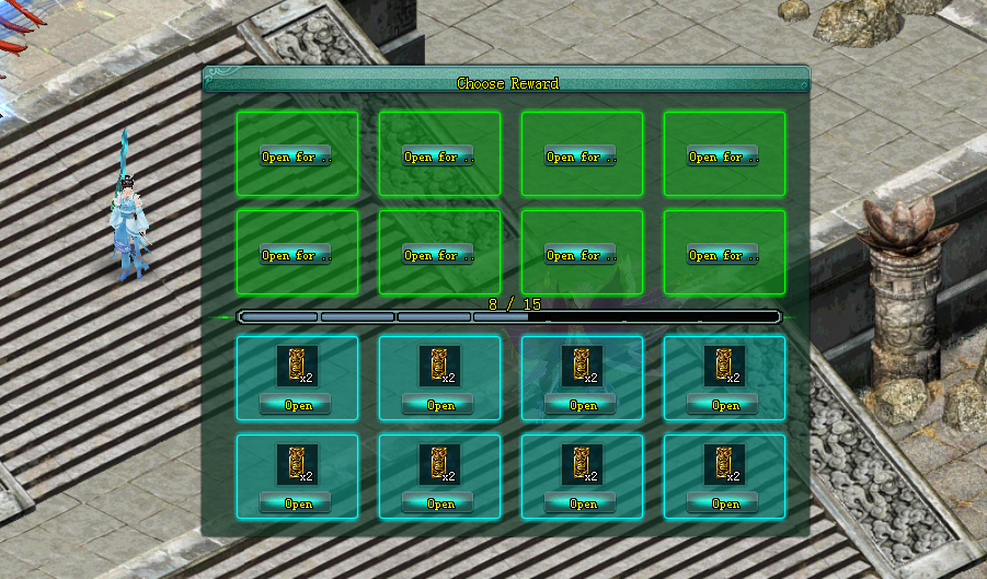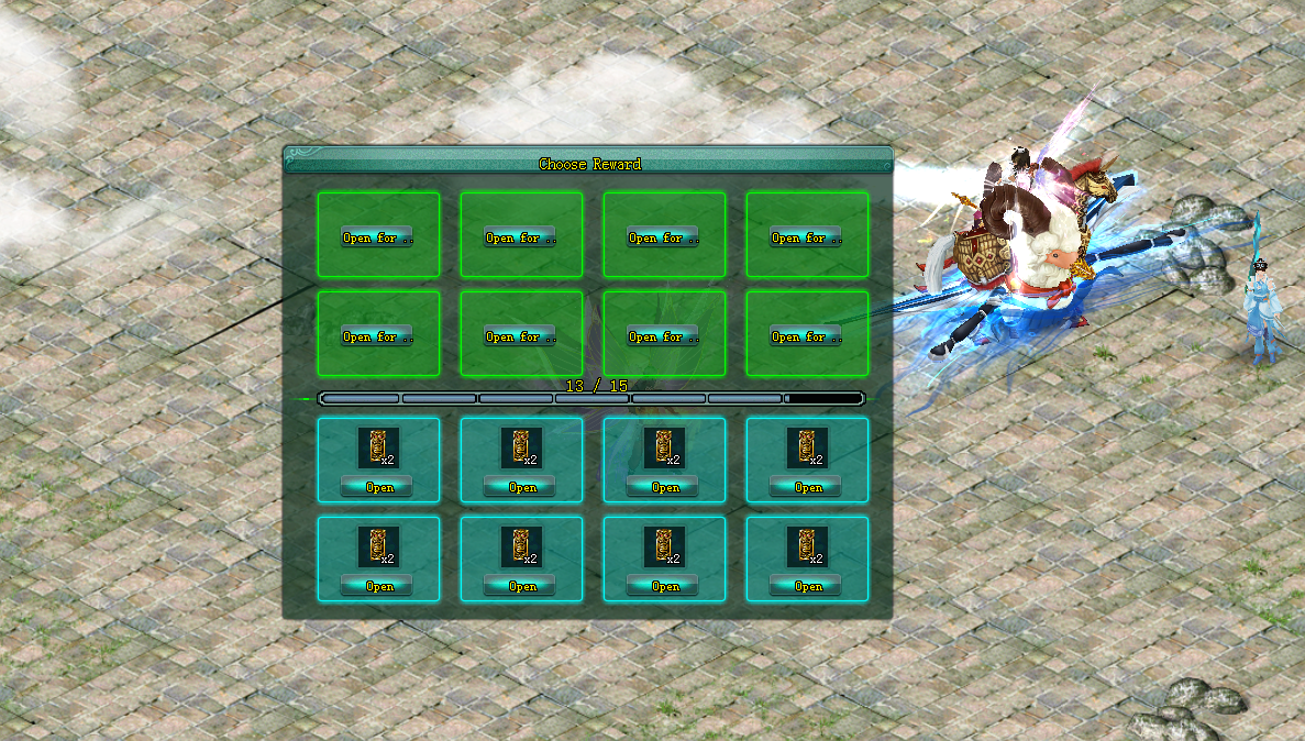 Defeating Xuo huo xiao feng, through the success, the captain clicked on the chest to receive the reward.