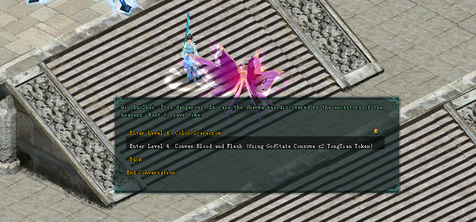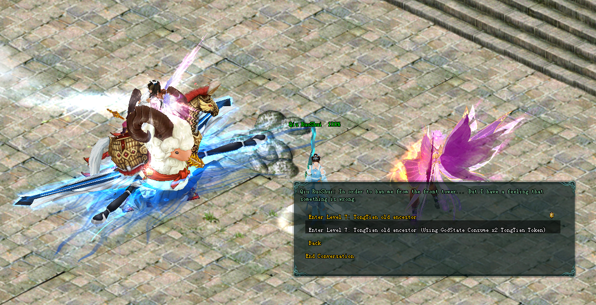 The captain talks with NPC Qiu RuoShui to continue the opening of the seventh stage - TongTian Old Ancestor.