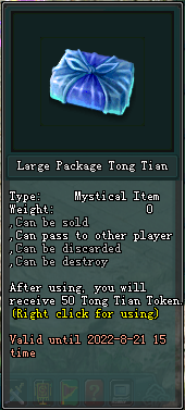 Large Package Tong Tian - Can be purchase at Jx2War Mall : 135 Jpoints