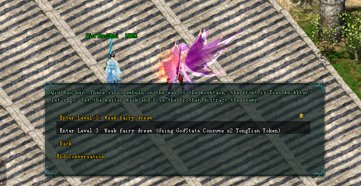 The captain talks with NPC Qiu RuoShui to continue the opening of the third stage-Weak Fairy Dream.