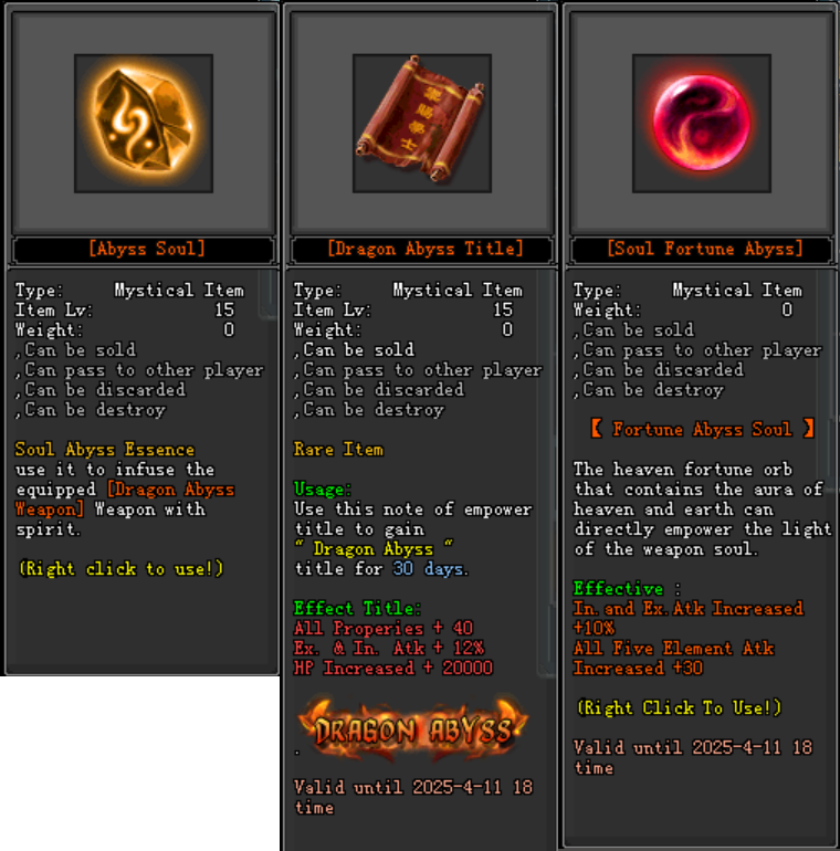 [Dragon Abyss Badge] ប្តូរយកសម្ភារៈ ផ្សេងៗដូចខាងក្រោម៖