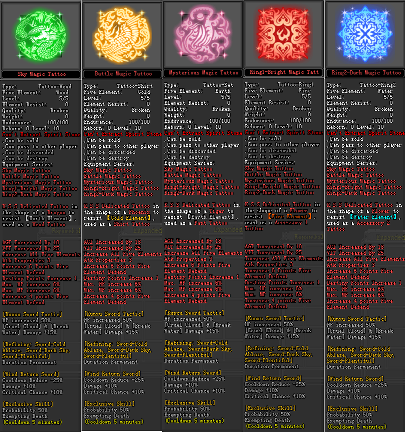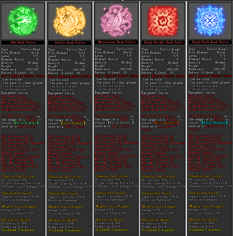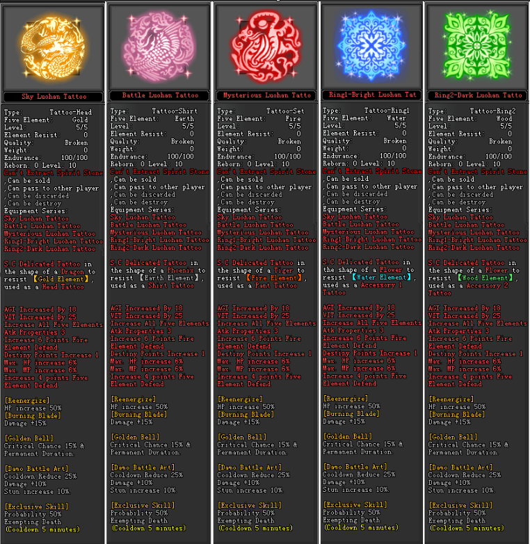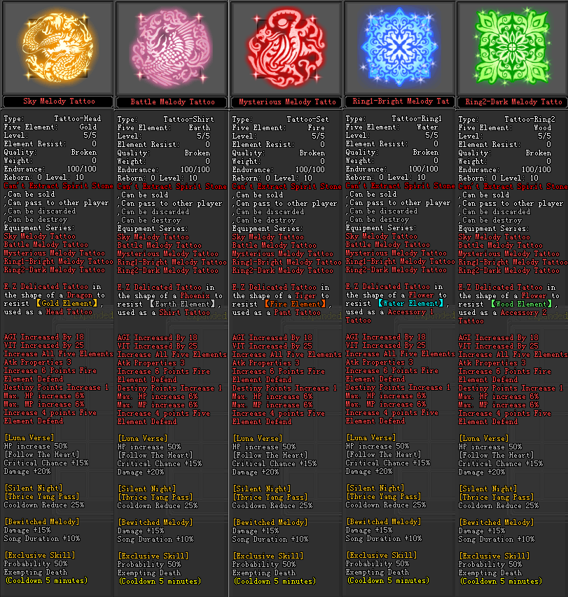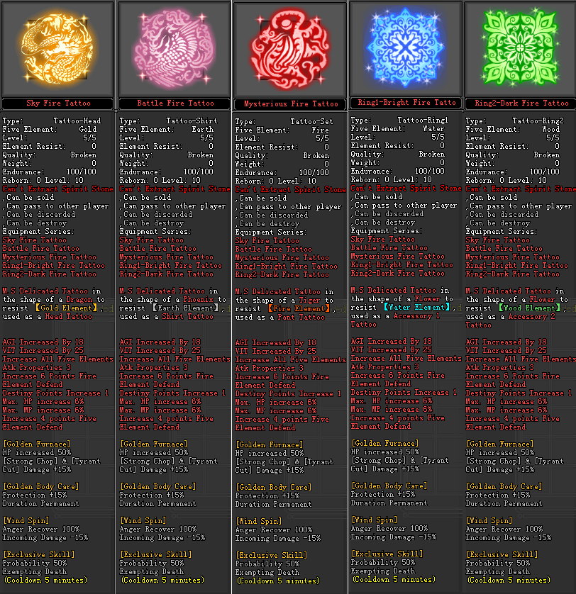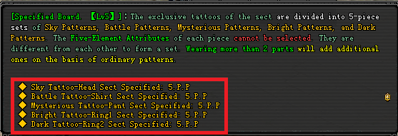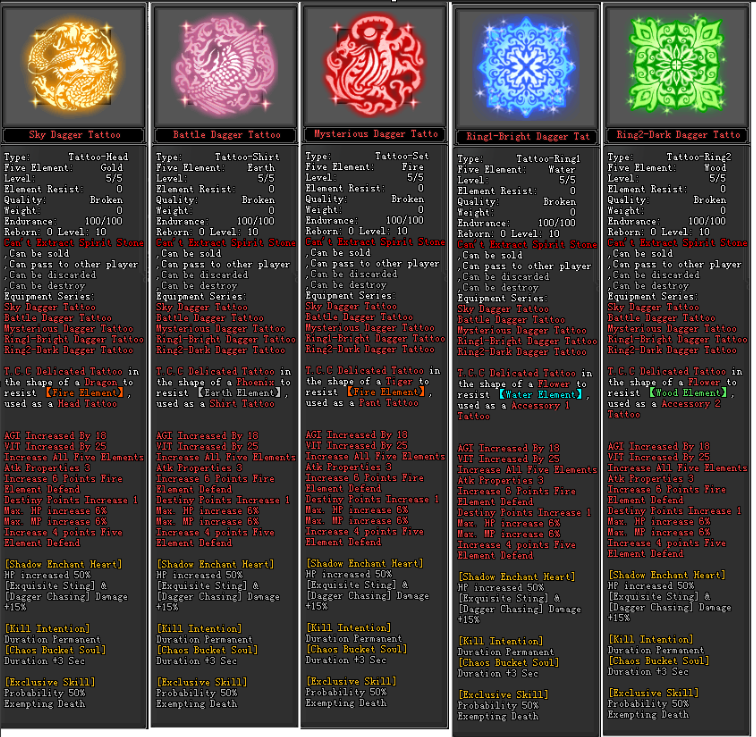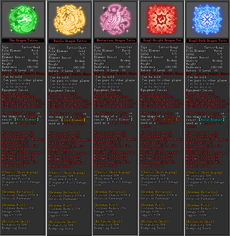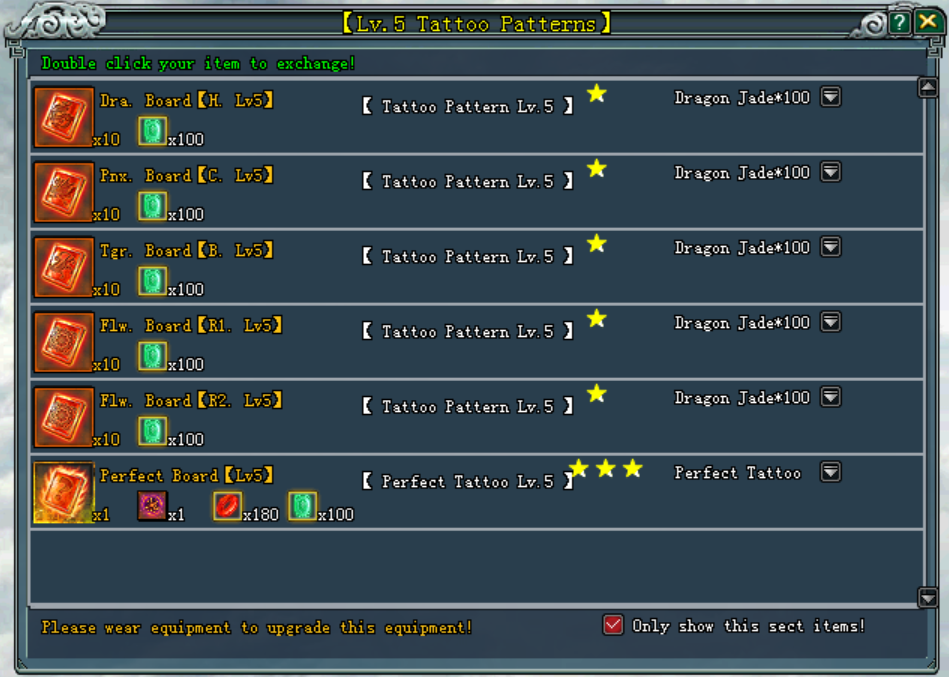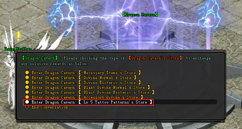 - អ្នកកម្សាន្តអាចធ្វើការ យកមកប្ដូរ នូវ Tattoo Patterns Lv.5 (Perfect) បានពី NPC: NPC:【 Dragon Cavern 】