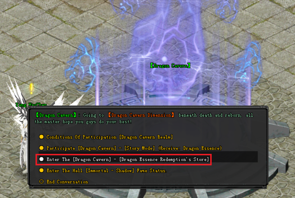 - NPC:【 Dragon Cavern 】មានទីតាំងស្ថិតនៅ៖ ផែនទី God Realm 197 / 189