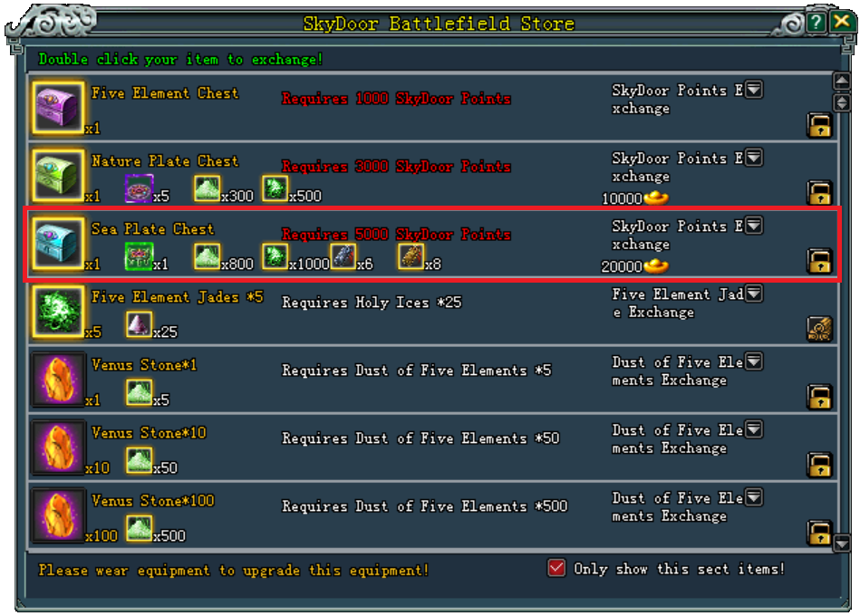 II. ហាងទំនិញសម្រាប់ ផ្លាស់ប្ដូរ Sea Five Element Plate Lv.3 ថ្មី៖