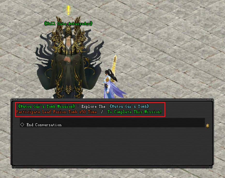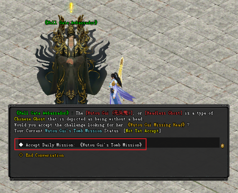 អ្នកកម្សាន្តអាចមកទទួលបេសកកម្មនេះបានពី《Hell Gate Ambassador》ដែលមានទីតាំងស្ថិននៅ ទីក្រុង QuanZhou 175/186