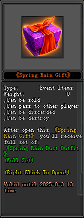 នៅក្នុងនោះតួអង្គរបស់អ្នកកម្សាន្តមានឳកាស 5% អាចទទួលបានរង្វាន់ពិសេសៗដូចខាងក្រោម៖