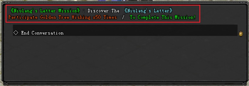 ● បេសកកម្មស្វែងរក សំបុត្រស្នេហ៍ Niulang's Love Letter (ធ្វើបាន ១ដង ក្នុងមួយថ្ងៃ)