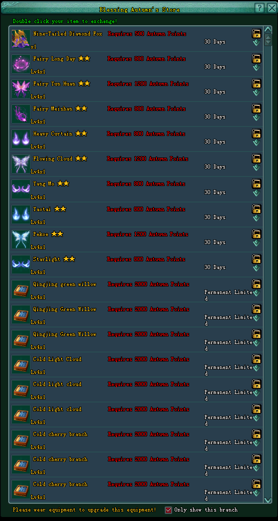 Obtained the Autumn Points by wishing the Romantic Blessing Tree can be consumed to exchange for the reward as below:
