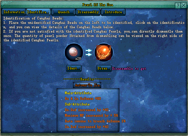 - Sea Relic Lv. 1, 2, 3, 4, 5, 6, 7 unexamined is used to verify the properties in the Pearl Of The Sea feature.