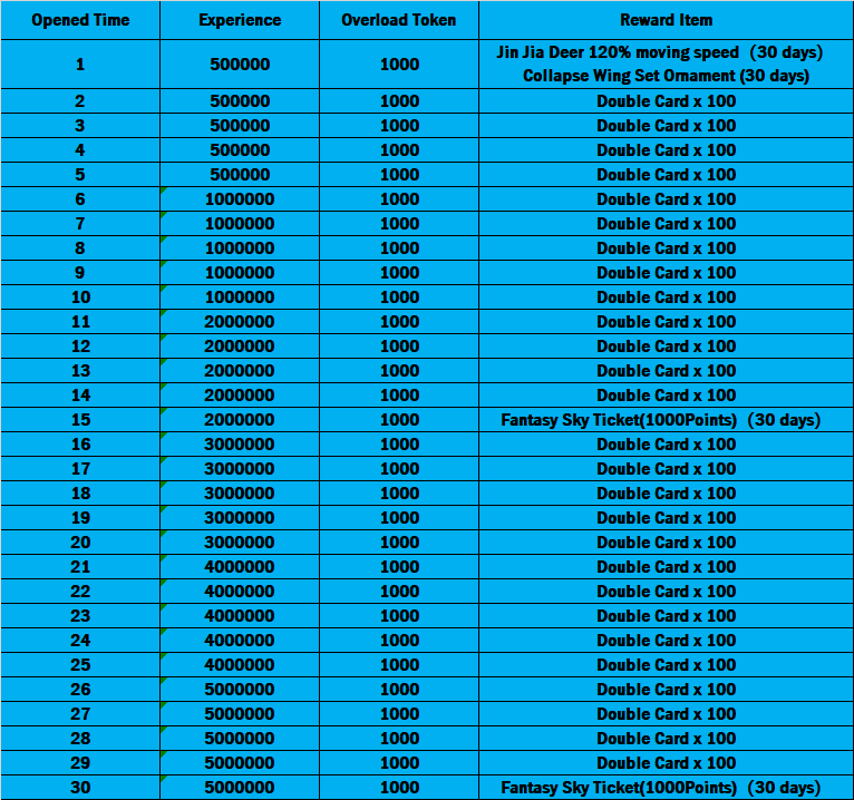 • You can open every day for 30 times in a row. This "VIP Card 5" is only valid for 60 days.