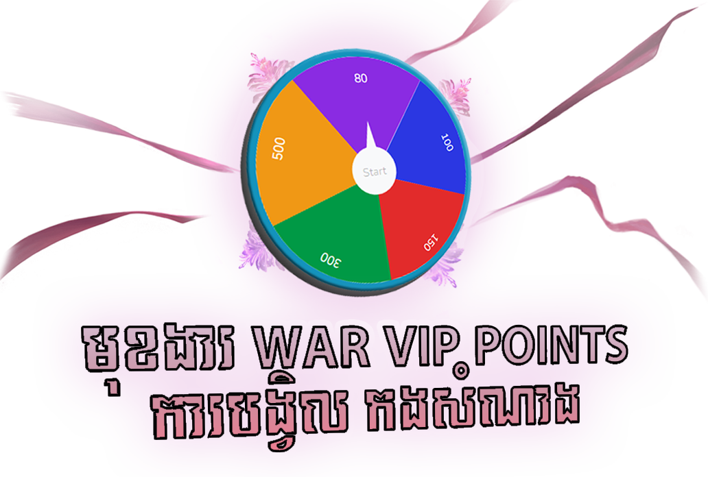 WAR VIP POINTS គឺជាពិន្ទុសន្សំ សម្រាប់យកមកធ្វើការប្ដូរ ការបង្វិល កងសំណាង(SPIN WHEEL)។