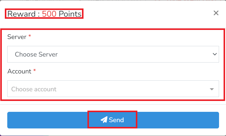 - បន្ទាប់មកអ្នកកម្សាន្តធ្វើការ ជ្រើសរើសនគរ(Choose Server) និង បំពេញគណនី(Account) ហើយចុច " Send " ជាការស្រេច។