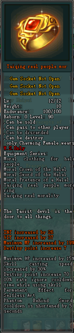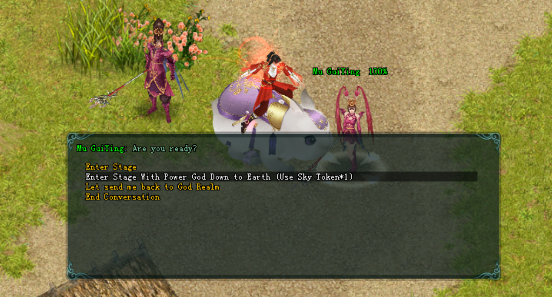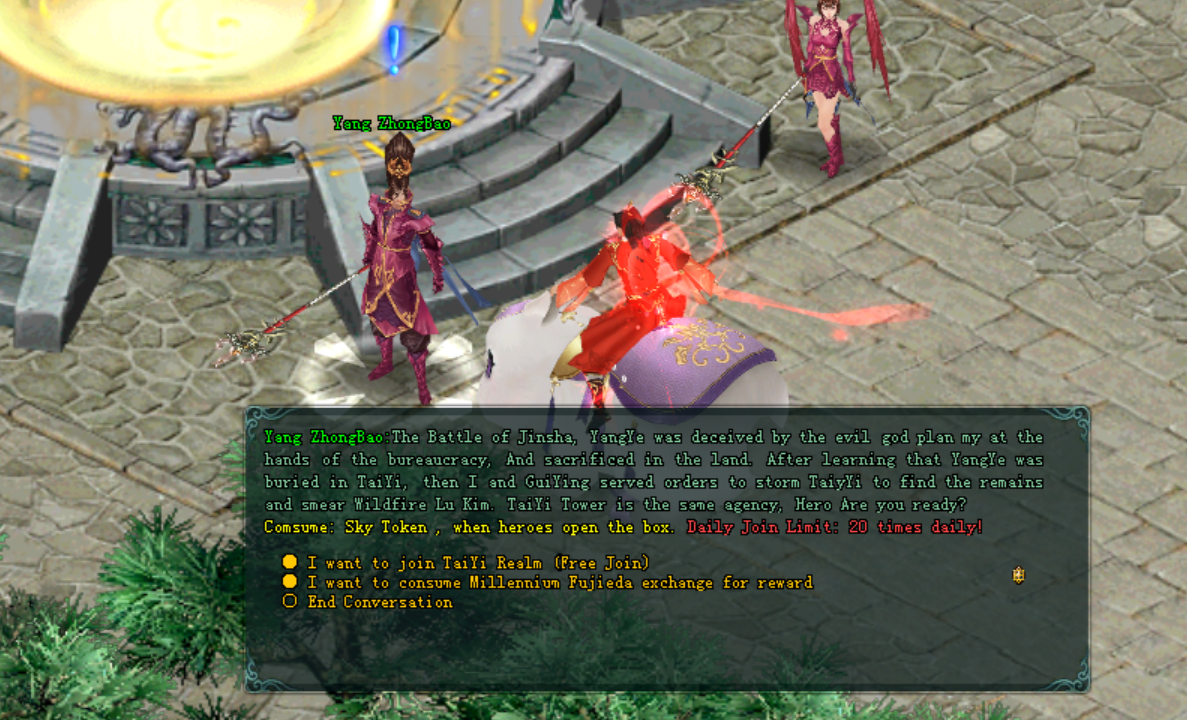 នៅពេលដែលតួអង្គមានកំរិត 80 ឡើងទៅ ចូលបក្សរួចអាចស្វែងរក Yang ZhongBao ដែលមានទីតាំងស្ថិតនៅ [God Realm 195 / 182 ] បន្ទាប់មកធ្វើការ Party ជាក្រុម។