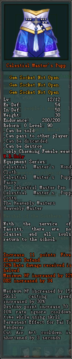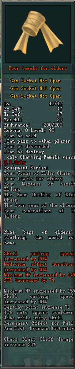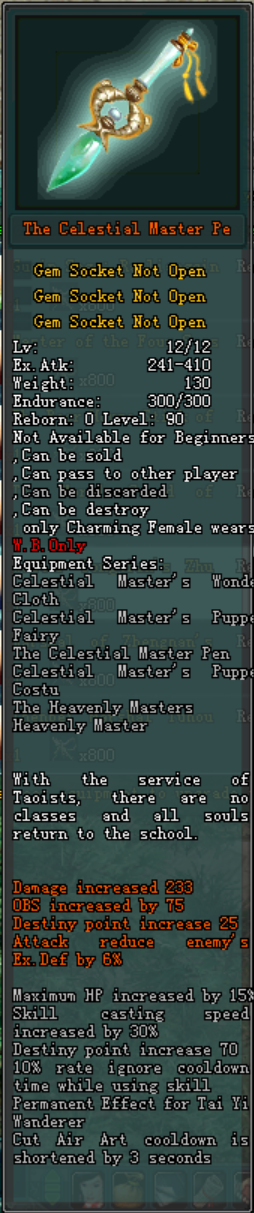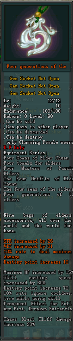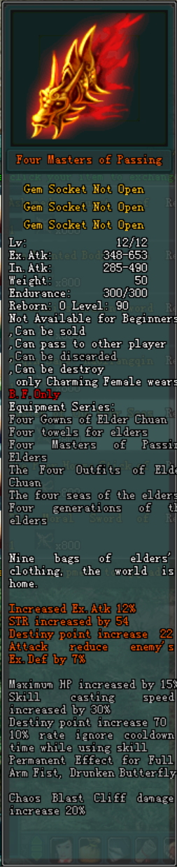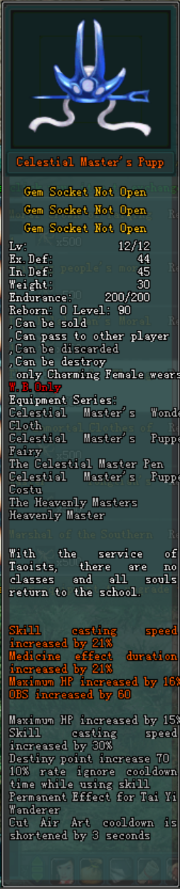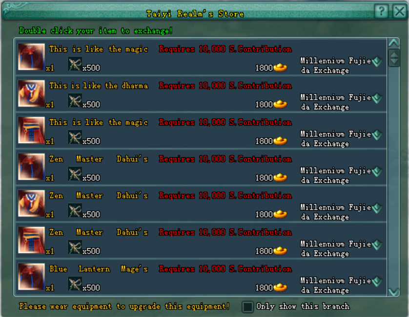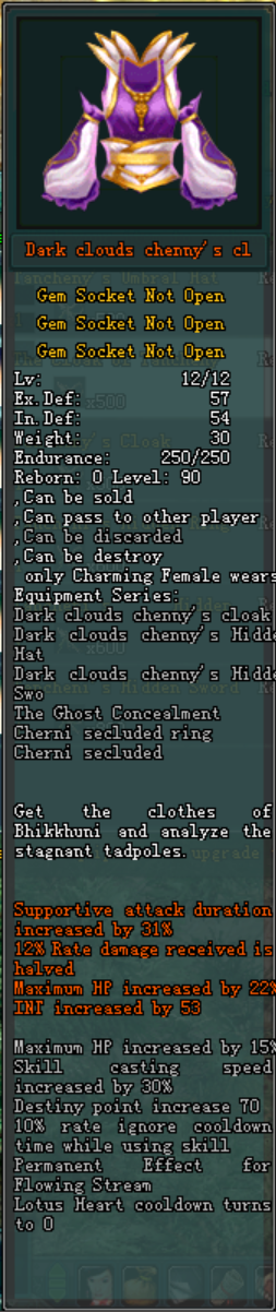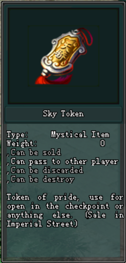 អ្នកកម្សាន្តអាចធ្វើការ ប្ដូរជាមួយ NPC Mu GuiYing នៅពេលចូលទៅដល់ក្នុង ប្រសាទ (ការដូរម្ដងៗ ត្រូវចំណាយ Sky Token ចំនួន 1)