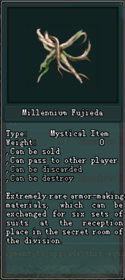 Millennium Fujieda គឺជាឬសឈើបុរាណដែលមានថាមពលមកពីសុរិយាចន្ទ្រា ហើយ Millennium Fujieda អាចប្ដូរយកទៅជាឈុតបក្សថ្មីនៅក្នុង Taiyi Realm Store បាន។