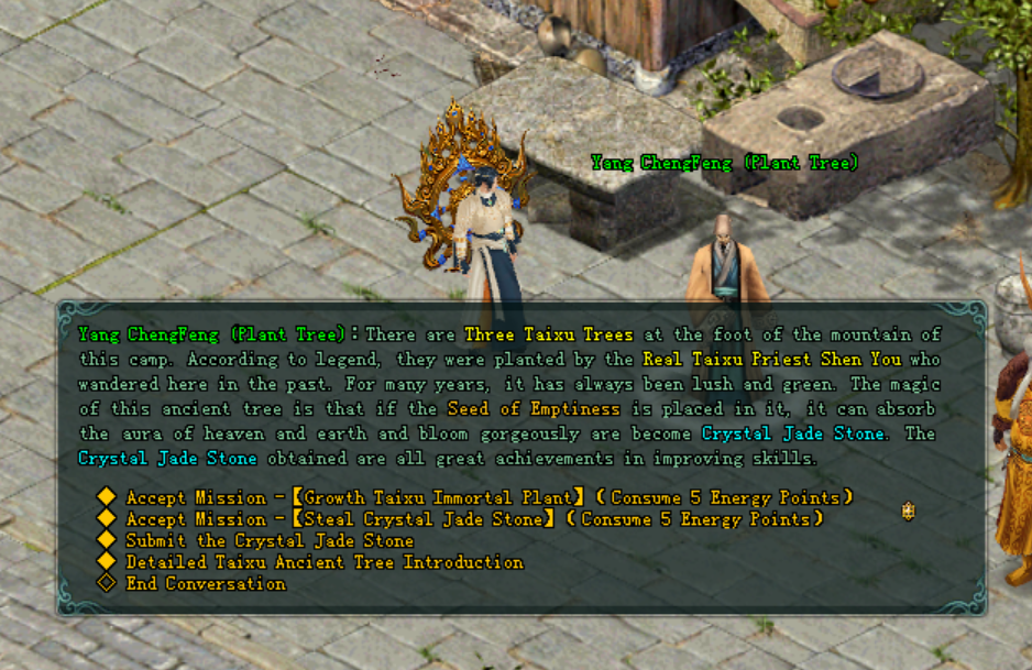 - ក្រោយពេលការលូតលាស់ របស់គ្រាប់ពូជចប់សព្វគ្រប់អ្នកកម្សាន្តអាចចុចលើ Tai Xu Ancient Tree ដើម្បីទទួលបានរង្វាន់ Random Crystal Jade Stone គ្រប់ប្រភេទ.