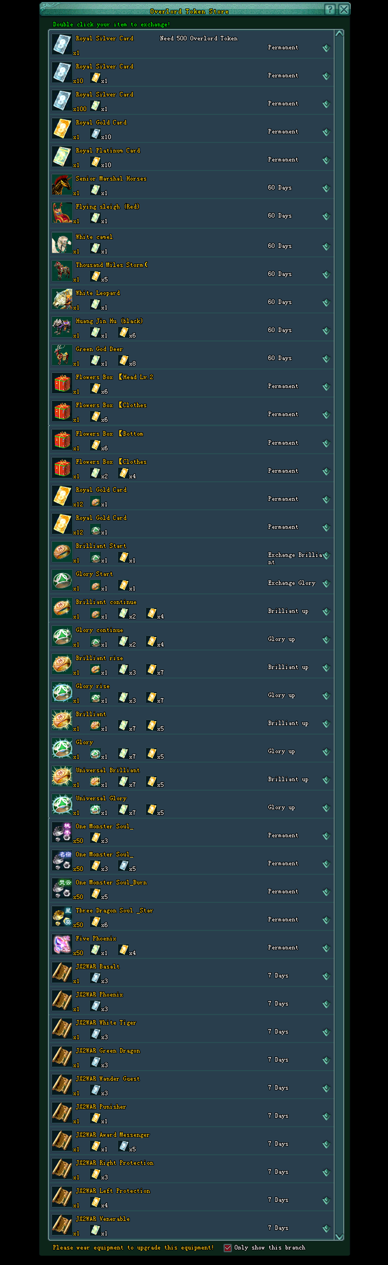 Item you can exchange from the Overlord Token Store :